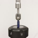 Medical bone screws are tested for torsional yield strength, maximum torque, and breaking angle. The bone screw is placed in a holding device such as a split collet. The associated driver instrumentation is used to apply a torque at a constant rate of rotation until failure. Torque and rotation data is collected.